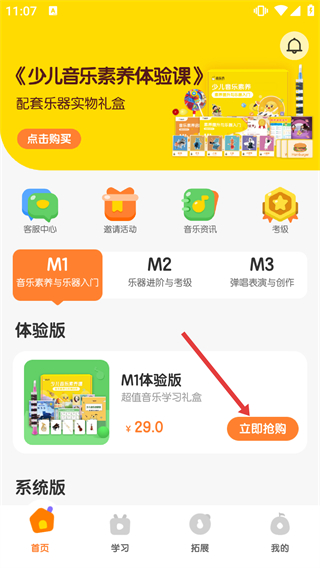 1、在首页找到【M1体验版】,点击【立即抢购】,进入课程详情页面。