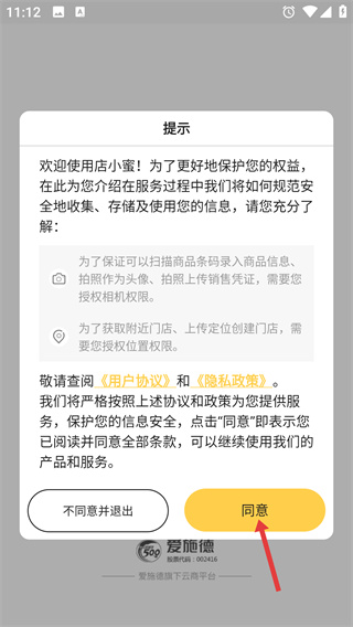 1、在提示页面,阅读《用户协议》和《隐私政策》后,点击【同意】按钮,进入登录页面。