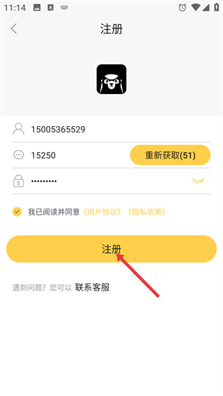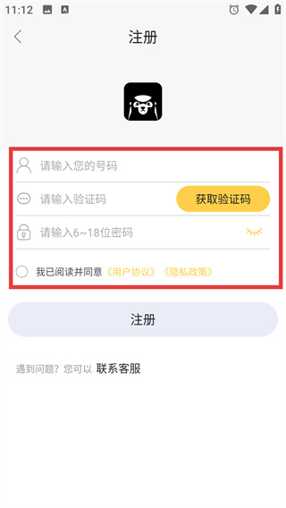 3、在注册页面,依次输入号码、获取并输入验证码、设置6~18位密码,勾选同意协议。