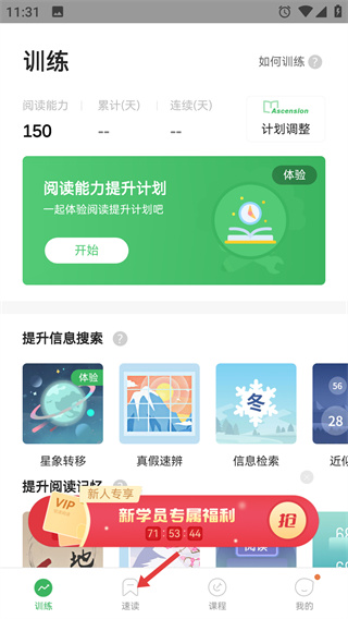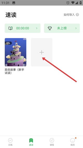 1、在训练页面,点击底部【速读】选项,进入速读功能页面。