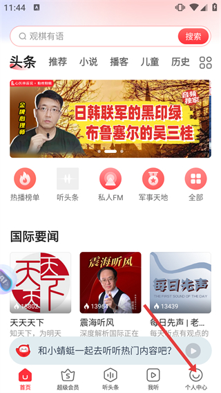 1、打开蜻蜓FM,点击右下角【个人中心】,进入个人中心页面。