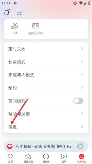 2、在个人中心页面,点击【设置】,进入设置界面。