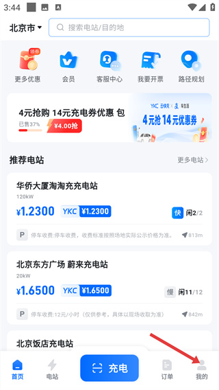 1、进入充电APP首页,点击底部【我的】,进入个人中心页面。