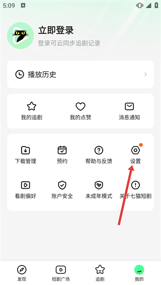 2、在“我的”页面中找到【设置】选项并点击,进入功能配置的设置界面。