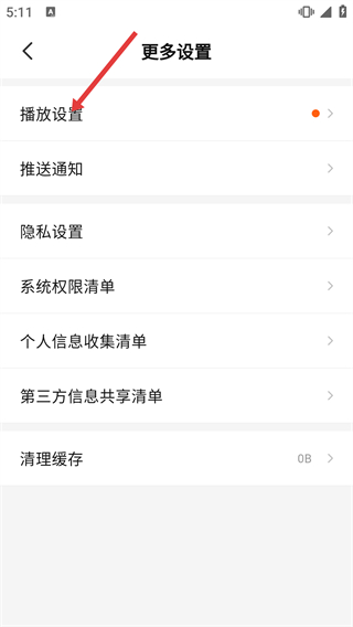 3、在设置界面点击【播放设置】选项,进入播放相关的参数配置页面。