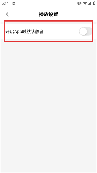 4、在播放设置页面,可操作“开启App时默认静音”的开关,调整应用启动时的默认音量状态。