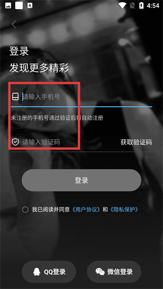 4、在手机登录页面,依次输入手机号、获取并填写验证码,完成登录操作。