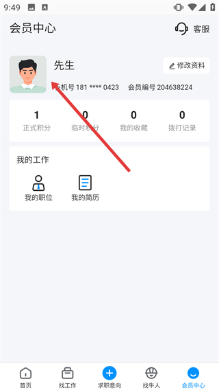 2、进入应用首页,点击底部导航栏的“会员中心”选项,进入会员中心页面。