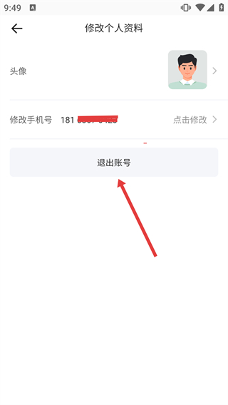 4、在修改个人资料页面,可进行头像、手机号等信息的修改操作,也可点击“退出账号”按钮,完成账号的退出操作。