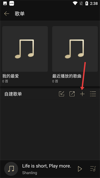 3、进入歌单管理页面后,在【自建歌单】区域点击加号按钮,触发新建歌单的操作弹窗。