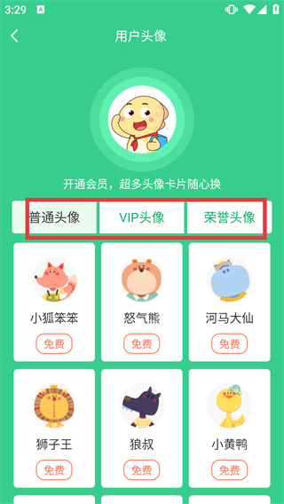 4、在【用户头像】界面,切换【普通头像】-【VIP头像】-【荣誉头像】分类,选择免费头像完成更换操作。