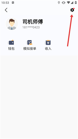 2、在司机个人中心页面,点击右上角的设置图标,跳转至应用的设置功能界面。