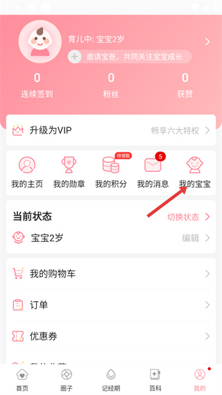 2、进入“我的”页面后,点击“我的宝宝”选项,进入宝宝信息管理页面,查看已录入的宝宝信息。