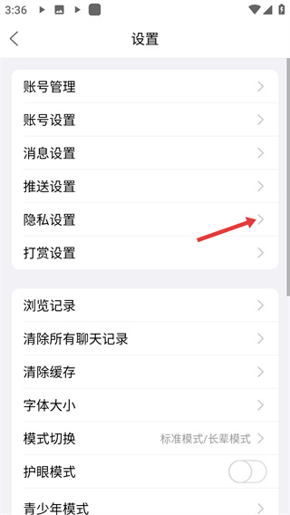 2、在【设置】页面中,找到并点击【隐私设置】选项,进入隐私相关的配置页面。