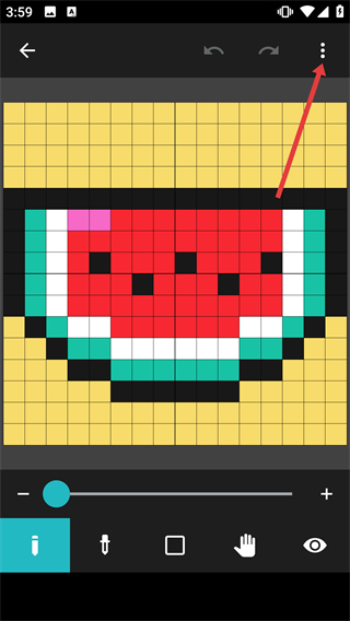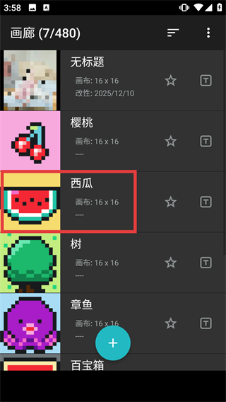 1、在画廊页面,选择“西瓜”对应的像素画条目,进入该作品的编辑画布页面。