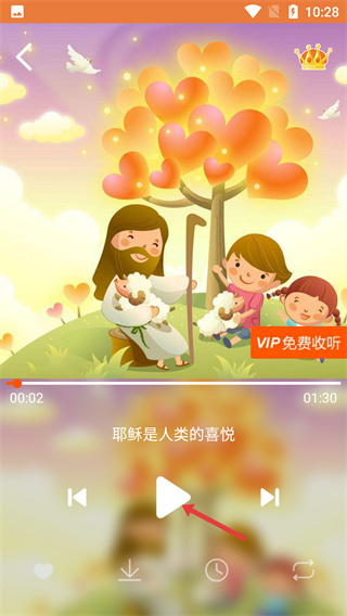 4、进入故事的播放界面后,点击中间的播放按钮,即可开始收听该故事,还能查看播放时长。