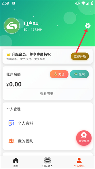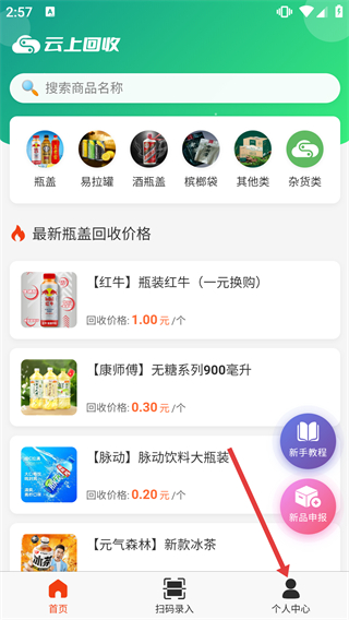 1、进入【云上回收】首页,点击底部【个人中心】进入对应页面。