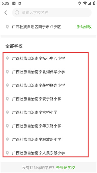 3、在学校列表中,选定对应地区的目标学校,进入该学校的班级选择列表。
