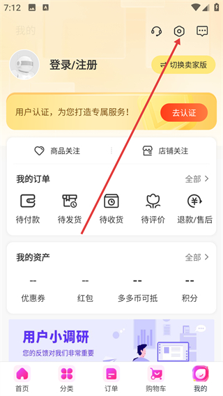 2、进入【我的】页面后,找到右上角的【设置】图标并点击,进入设置界面。