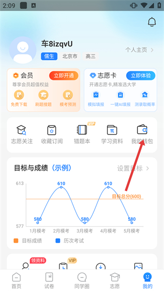 2、智能管理模考月考周测成绩,生成趋势图析科目差距,设目标追踪进步轨迹查漏补缺。