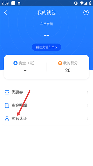 3、在我的钱包页面,选择【实名认证】选项,进入实名认证的信息填写界面。