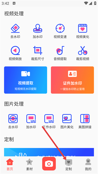 1、在首页点击底部的【定制】选项,可进入定制功能页面。