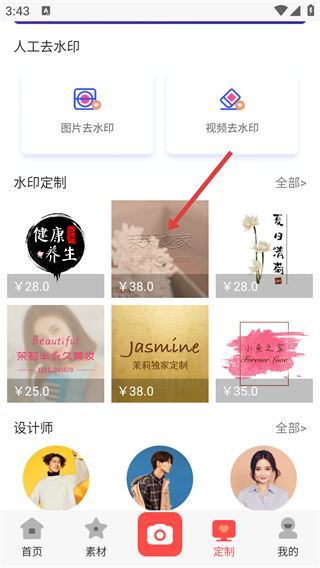 2、进入【定制】页面后,在【水印定制】板块选择需要的水印模板。