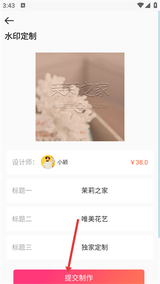 3、在【水印定制】详情页确认标题信息后,点击【提交制作】完成水印定制。