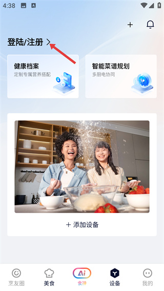1、在“食神”页面点击【登陆/注册】入口,进入对应登录界面。