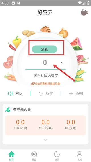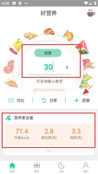 3、支持手动录入食品重量或连接智能秤读取数据,未收录食材可自定义添加,满足多样化饮食记录需求。