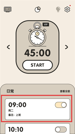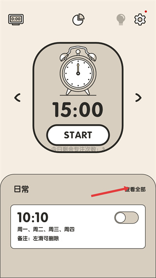 1、进入专注计时主界面,点击“日常”板块右侧的“查看全部”按钮,进入“我的日常”管理页面。