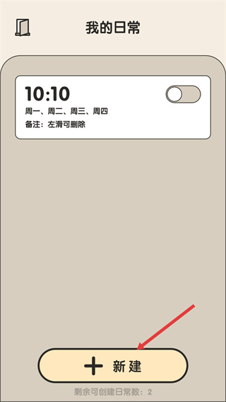 4、确认新增日常的信息后,点击页面右上角的对勾按钮保存,返回主界面后,“日常”板块会显示已创建的日常条目,且对应开关处于开启状态。
