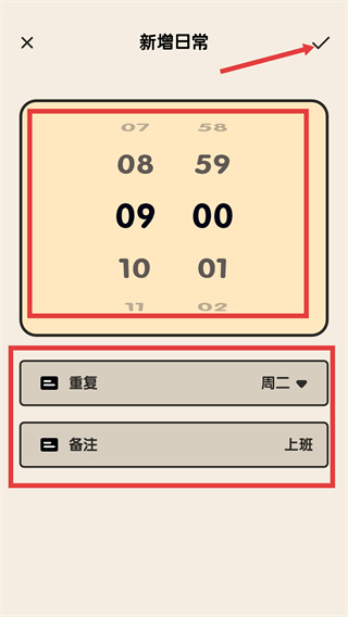 3、在“新增日常”页面,设置目标时间,选择重复周期,填写备注内容,完成日常的信息配置。