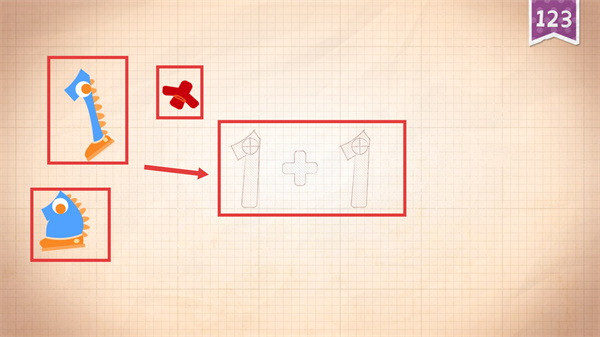 2、在数字操作页面中,分别选中【1】对应的蓝色部件与【2】对应的红色部件,为数字组合操作做准备。