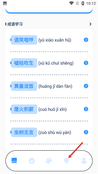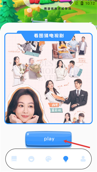 1、在【成语学习】页面点击底部的灯泡图标,切换至【看图猜电视剧】玩法的入口页面,可开启该趣味猜剧挑战。