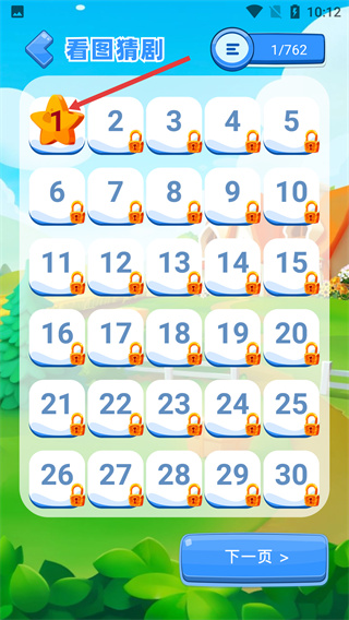 3、在【看图猜剧】关卡选择页面,点击已解锁的【第1关】,进入对应答题界面,开启该关的猜剧挑战。