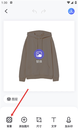 4、进入模板编辑界面后,点击底部的【背景】选项,可对当前模板的背景进行调整设置。