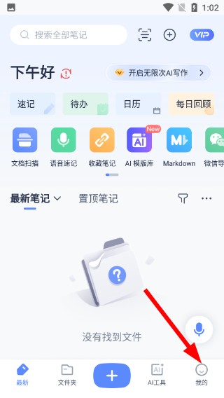 1、在笔记应用的首页,点击底部导航栏的“我的”选项,进入个人中心页面。