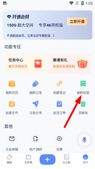 2、进入“我的”页面后,在功能专区找到“我的标签”选项,点击进入标签管理页面。