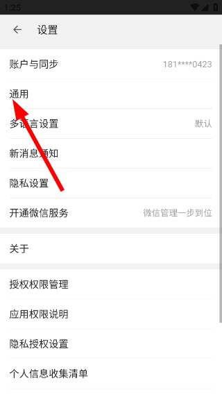 2、进入设置页面后,点击“通用”选项,进入通用设置页面。