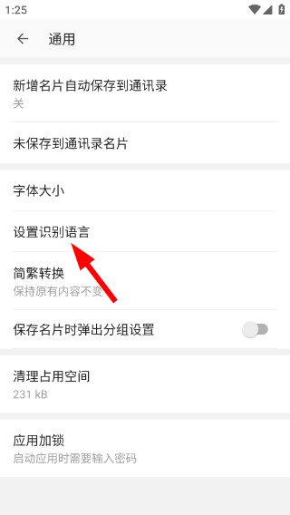 3、在通用设置页面中,点击“设置识别语言”选项,进入语言选择配置页面。