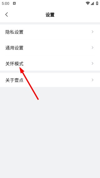 2、在设置页面中,找到“关怀模式”选项并点击,进入关怀模式的介绍页面。