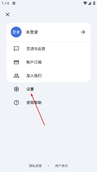 2、点击【登录】后弹出的菜单中,可找到【设置】选项,该选项用于进入软件的各项配置调整页面。