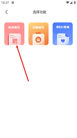 3、在功能选择页面,点击【生成美化】选项,进入“生成静态二维码”的内容编辑页面。