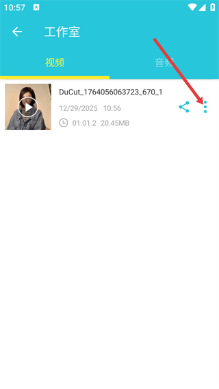 2、在工作室的视频列表中,找到目标视频,点击其右侧的三点菜单按钮。