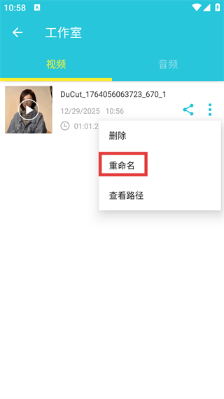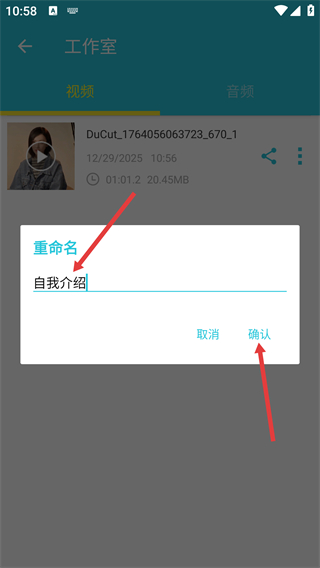 4、在重命名弹窗的输入框中填写新名称,点击【确认】按钮完成视频的重命名操作。