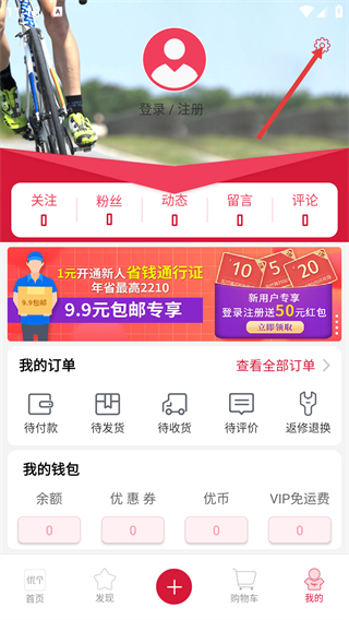 3、在个人中心页面,点击右上角的设置按钮,进入应用的设置配置页面。