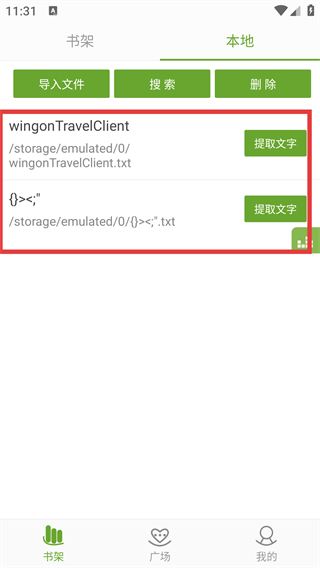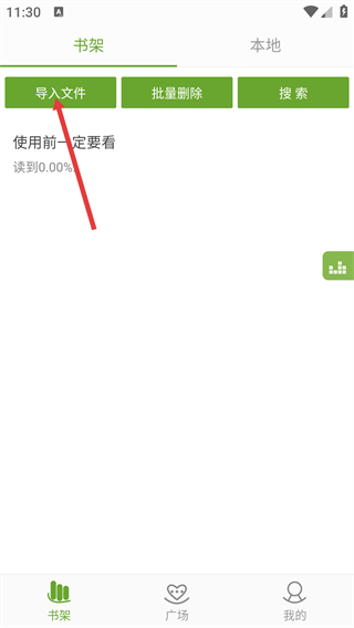 4、导入完成后返回书架的本地页面,即可看到已成功导入的文件。