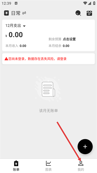 1、在账单页面,点击底部导航栏的【我的】选项,进入个人中心页面。