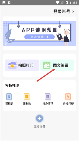 1、进入APP首页,找到并点击【图文编辑】功能按钮,进入图文编辑的操作界面。